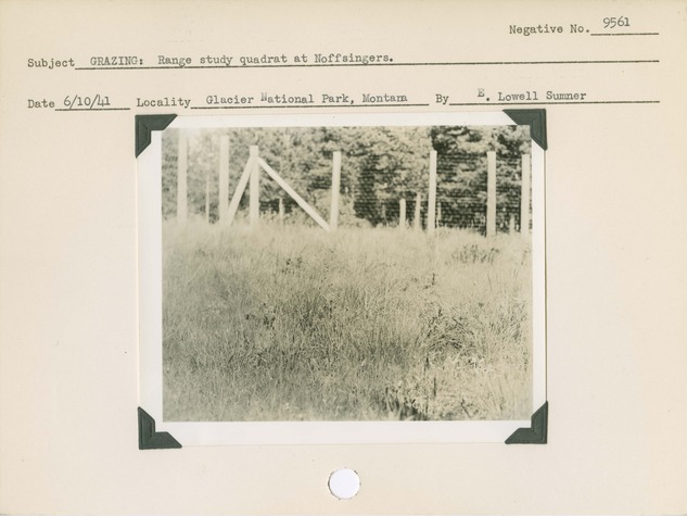 Grazing: Range study quadrat at Noffsingers. Locality: Glacier National Park, Montana. Negative #: 9561