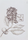 Persimmon tree with inset of bloom and detail of branch, leaves, and fruit.