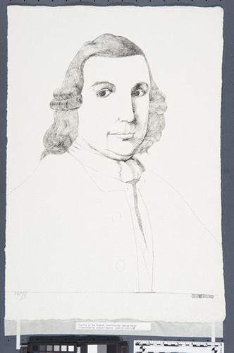 Facial interpretation after existing portraits of the period. Contract called for a fifth illustration, an exterior view of Independence Hall for the cover of the handbook, but suspect it was actually completed earlier and submitted to the National Park Service as PX-1100-4-0109 (1974) 1/3b with other American Bicentennial illustrations.; Abbr=PUB