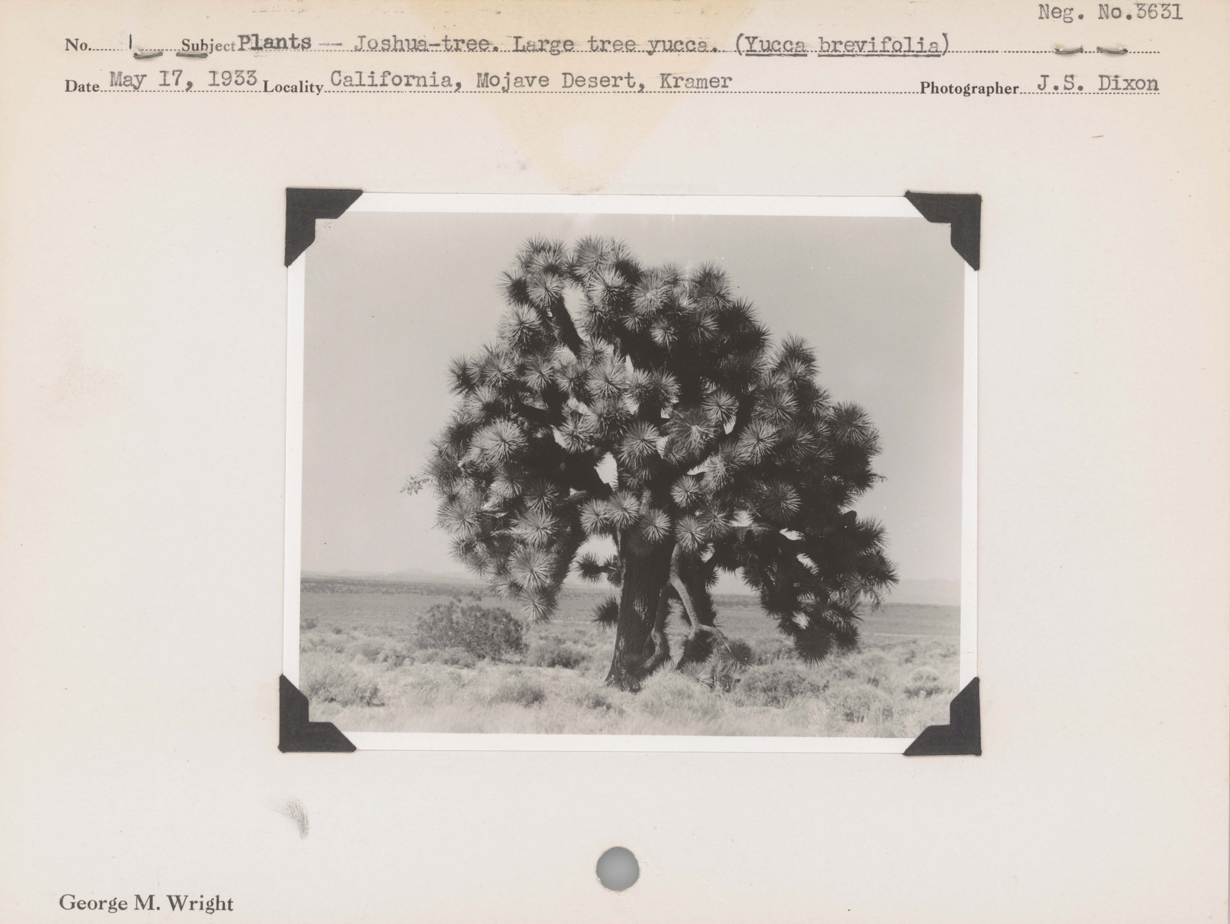 Plants--Joshua-tree. Large tree yucca. (Yucca brevifolia). Locality: California, Mojave Desert, Kramer. Negative #: 3631