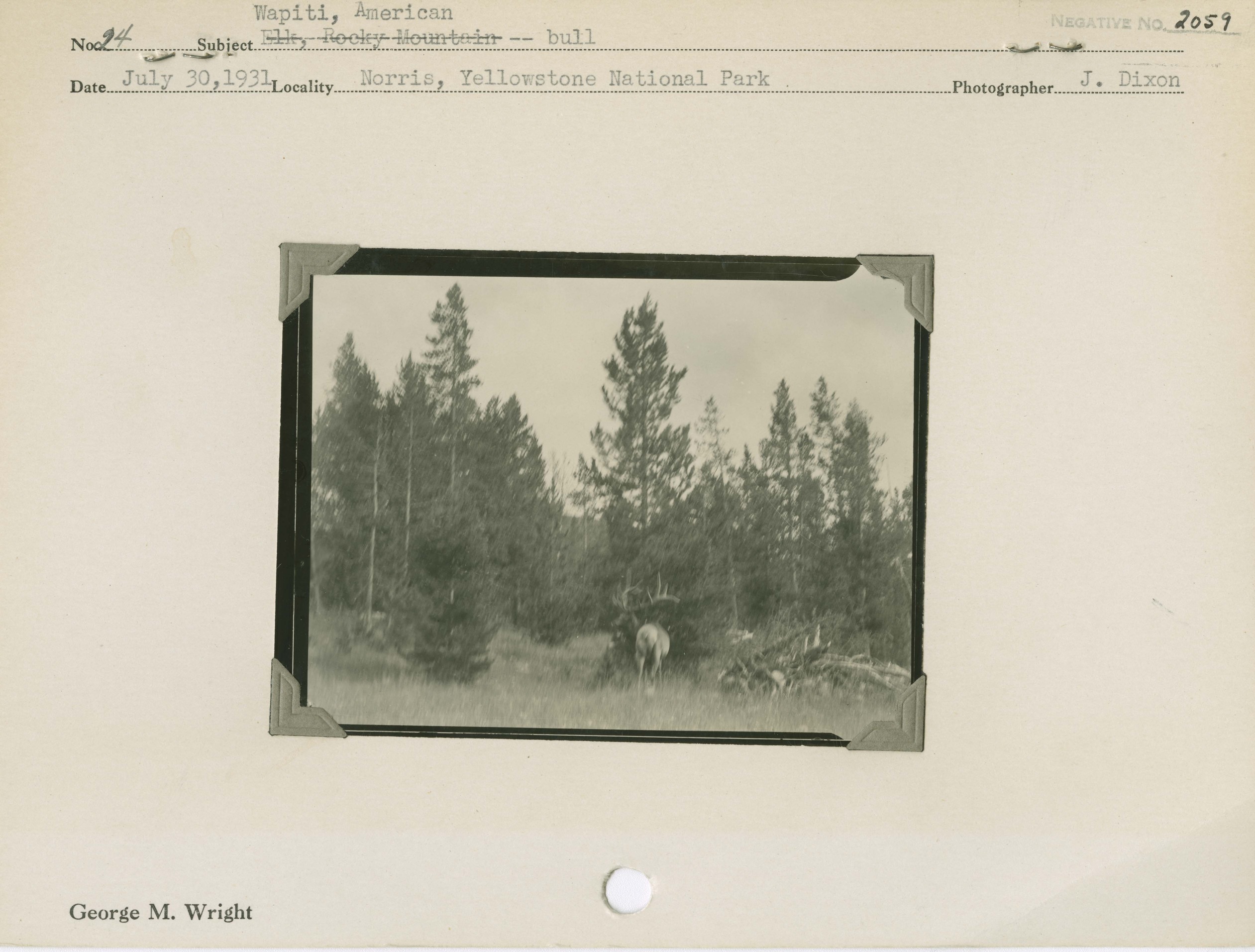 Wapiti, American [Elk] – Bull. Negative #: 2059. Locality: Norris, Yellowstone National Park.