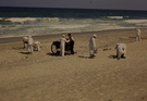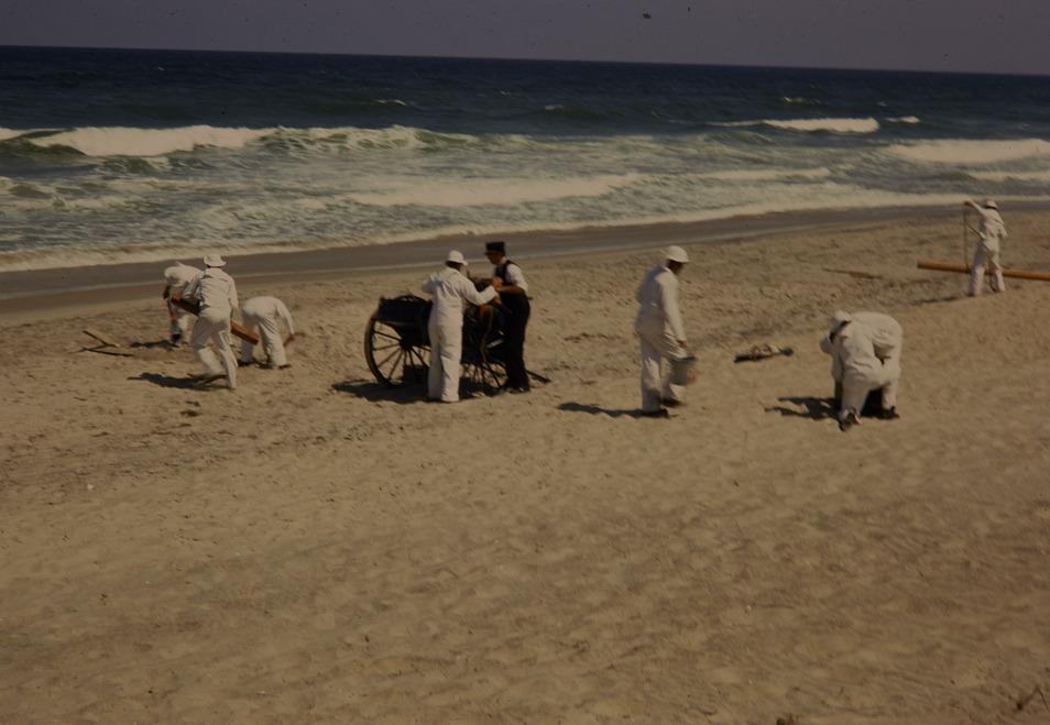 NPS employees setting up stuff from a wagon on Cape Hatteras National Seashore.