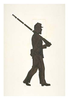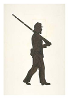 Silhouette of fort guard facing to the right.