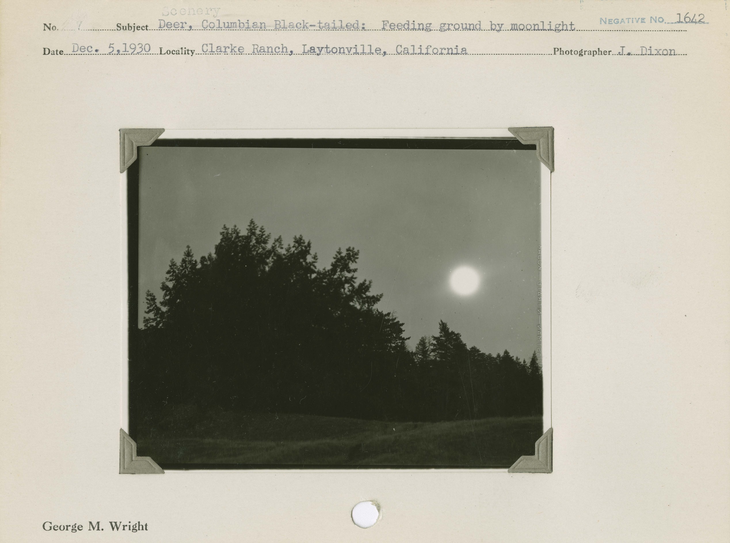 Deer, Columbian Black-Tailed: Feeding ground by moonlight. Locality: Clarke Ranch, Laytonville, Mendocino County. Negative: 1642.