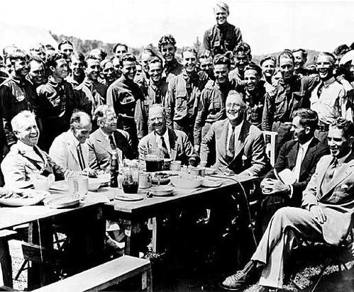 Big Medows, Skyland Drive, Shenandoah National Park. CCC (Civilian Conservation Corps) Inspection trip, August 12, 1933 at Shenandoah National Park, Virginia. L to R: Murdock, Howe, Ickes, Fechner, Roosevelt, Wallace, Tugwell.