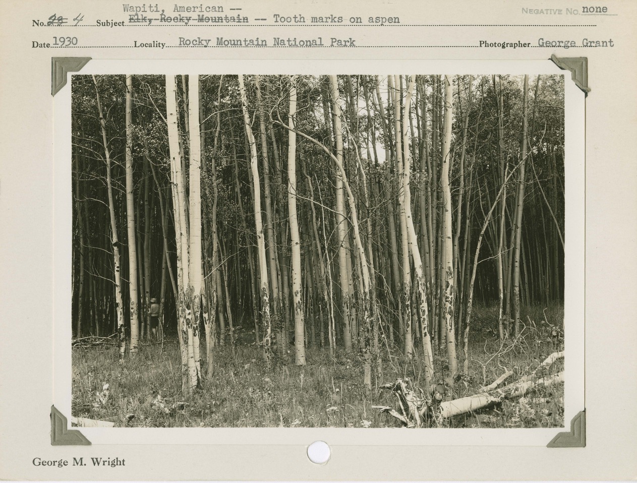Wapiti, American [Elk]: Tooth marks on aspen. No Negative on File. Locality: Rocky Mountain National Park.