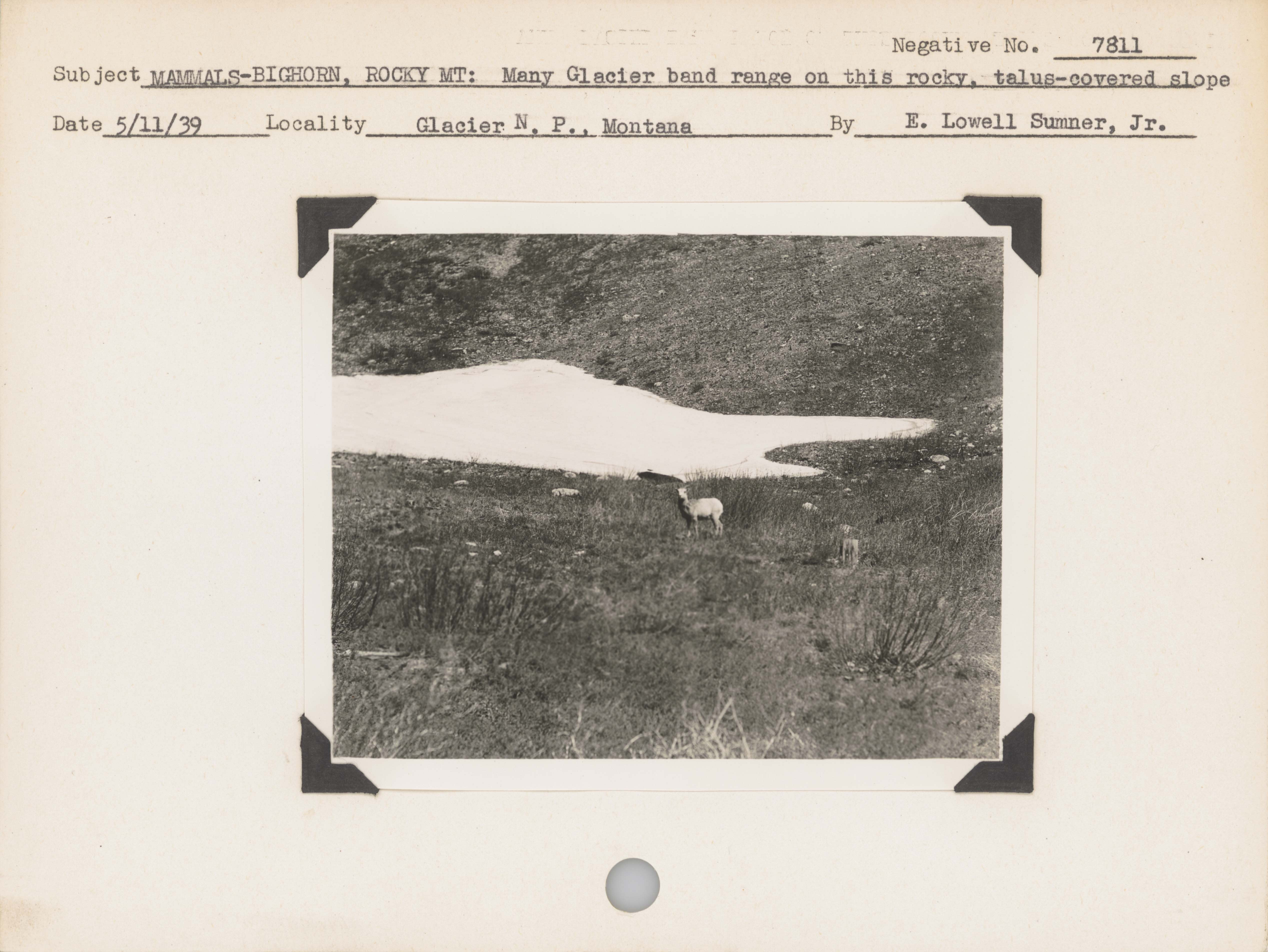 Mammals--Bighorn, Rocky Mountain--Many Glacier band range on this rocky, talus-covered slope. Locality: Glacier National Park, Montana. Negative #: 7811