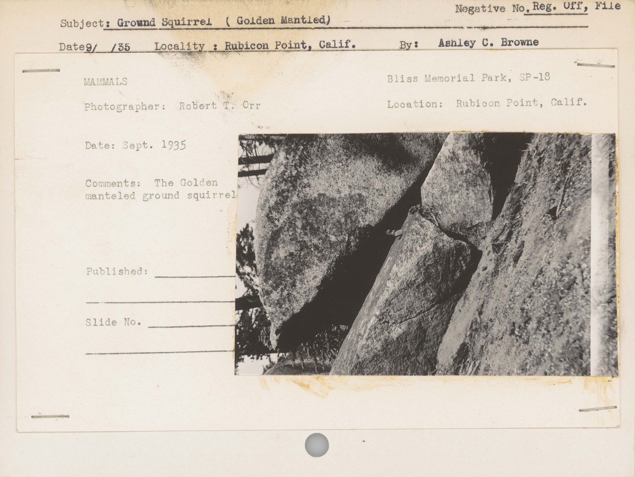 Ground Squirrel (Golden Mantled). Locality: Rubicon Point, California. No negative on file