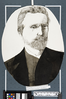 Oval portrait of Augustus Saint-Gaudens rendered as younger and less well-known, probably to resemble an 1881 photograph with head and collar positions similar.