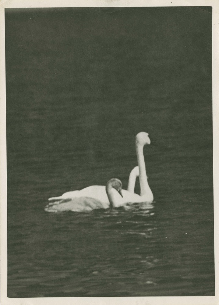 Trumpeter Swan Adult with white and grey cygnets. Locality: Yellowstone National Park. No negative on file