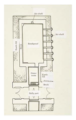 Plan view diagram of Bombproof No. 2 (with type overlay).