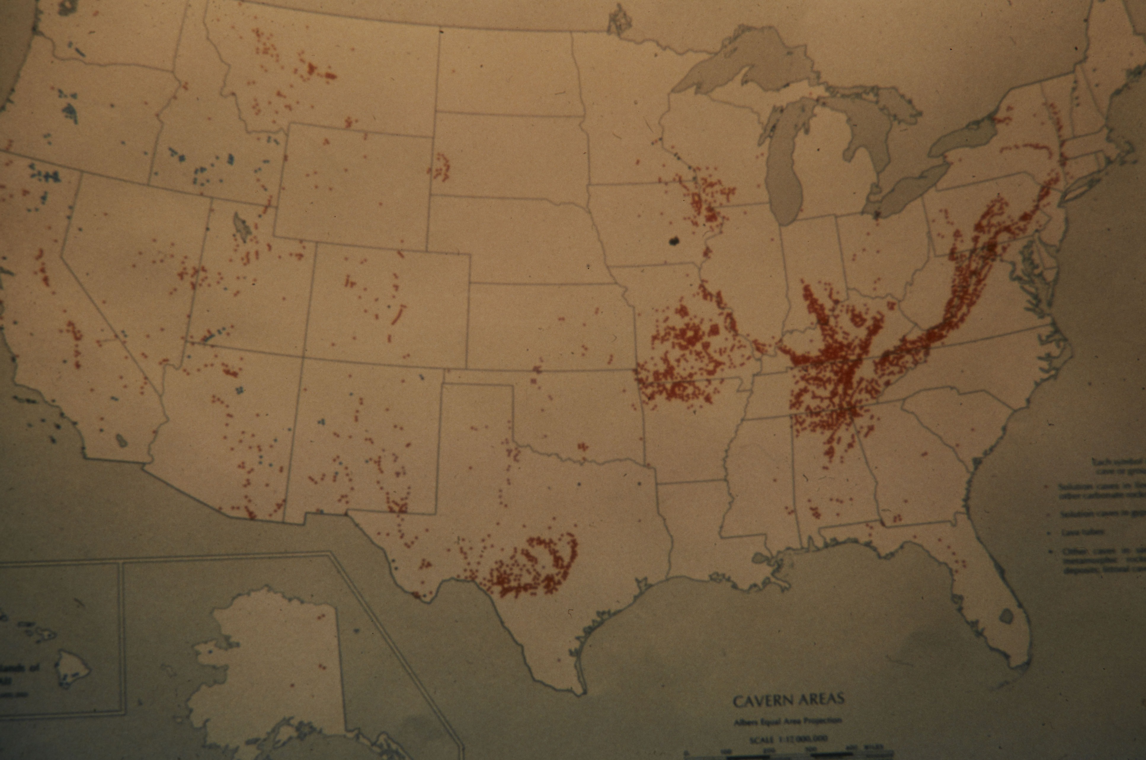 Map of cavern areas across the United States.