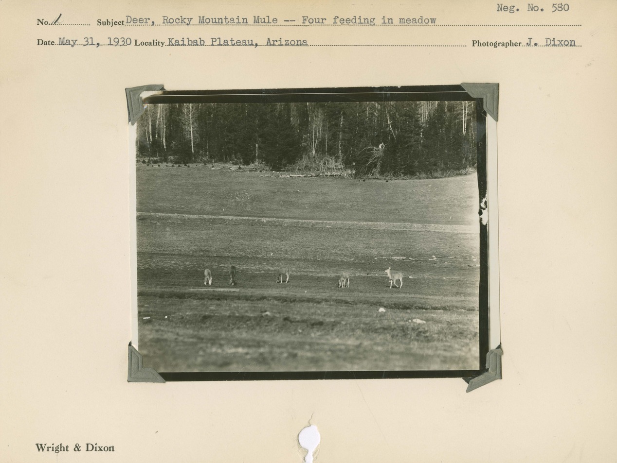 Deer, Rocky Mountain Mule – Four feeding in meadow. Negative #: 580. Locality: Kaibab National Forest, Arizona.
