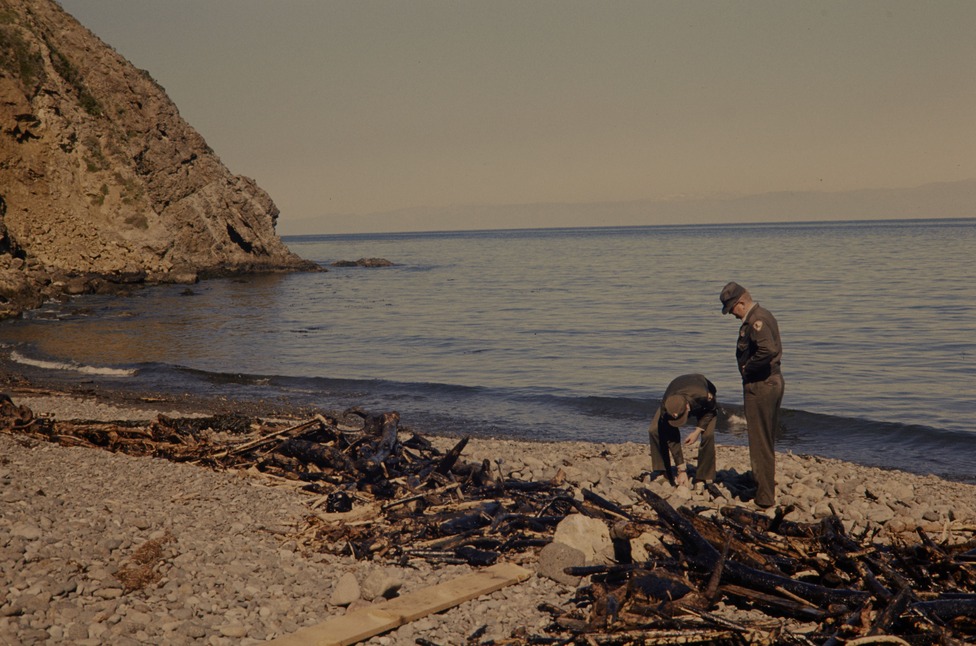 Oil Spill and water litter in California on Channel Islands National Park.
