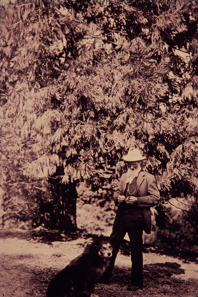 John Muir and a dog outside.