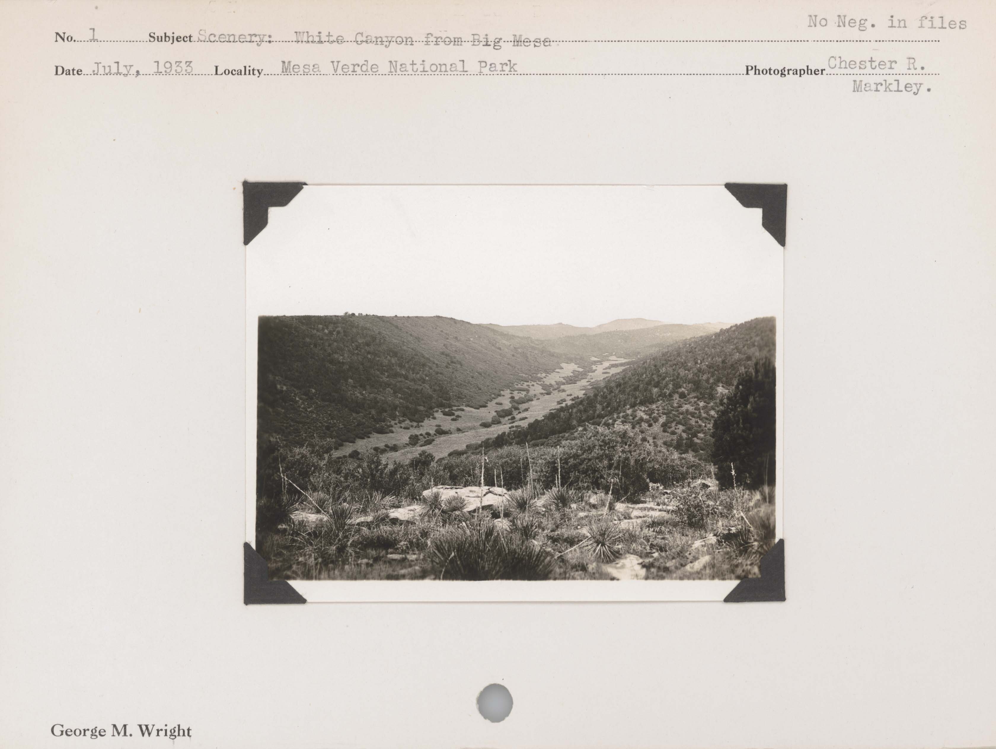 Scenery: White Canyon from Big Mesa. No negative on file. Locality: Mesa Verde National Park.