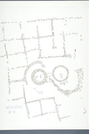 A site plan view of Sun Point Pueblo highlighting the size and complexity of the pueblo by showing the remains of fifteen room foundations which surround the tower and kiva.