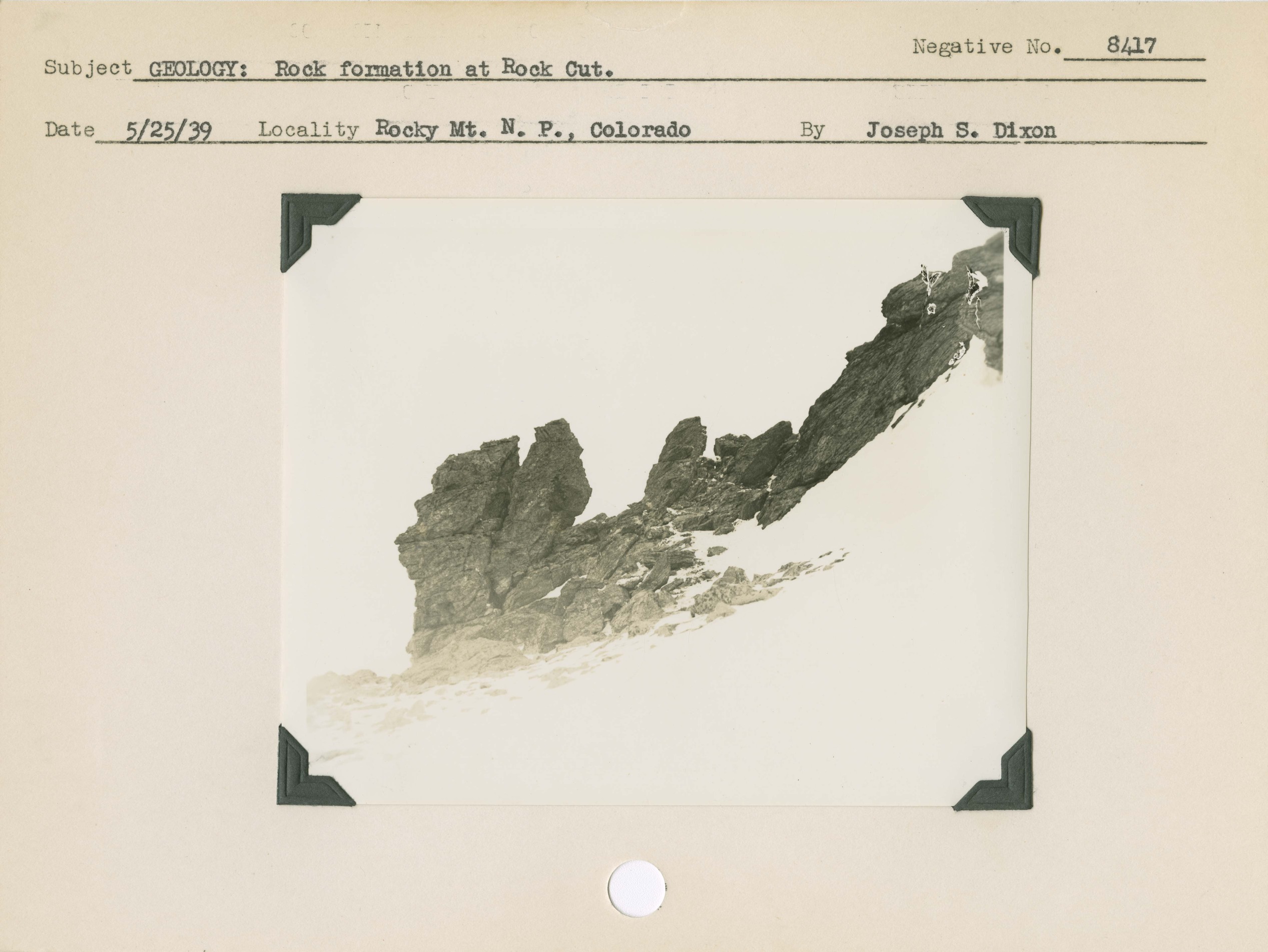 Geology: Rock formation at Rock Cut. Locality: Rocky Mountain National Park, Colorado. Negative #: 8417