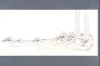 Sketch of forest floor and Ruby Creek with American Dipper (bird).