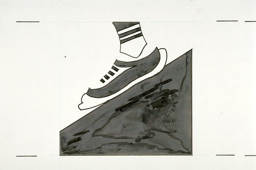Symbol: Trail is Steep and Wet (walking shoe with ribbed, rubber soles)