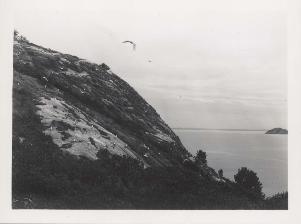 West side of North Marble Island. South Marble Island in distance. Negative #: 11759. Locality: Glacier Bay National Monument. [This information comes from the reverse of the envelope for this negative #].