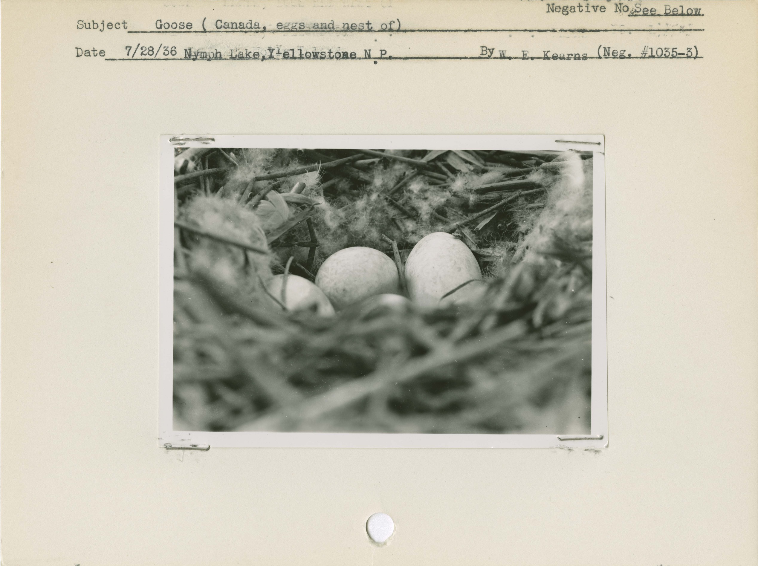 Goose (Canada, eggs and nest of). Locality: Nymph Lake, Yellowstone National Park. Negative #: 1035_3