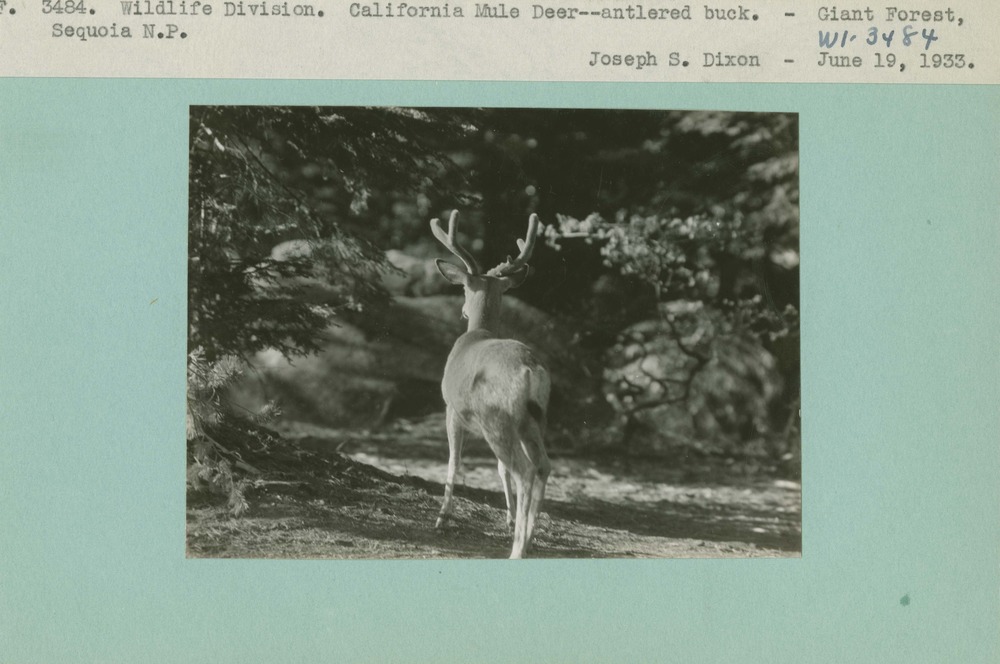 Wildlife Division. California Mule Deer – antlered buck. Locality: Giant Forest, Sequoia National Park. Negative #: 3484.