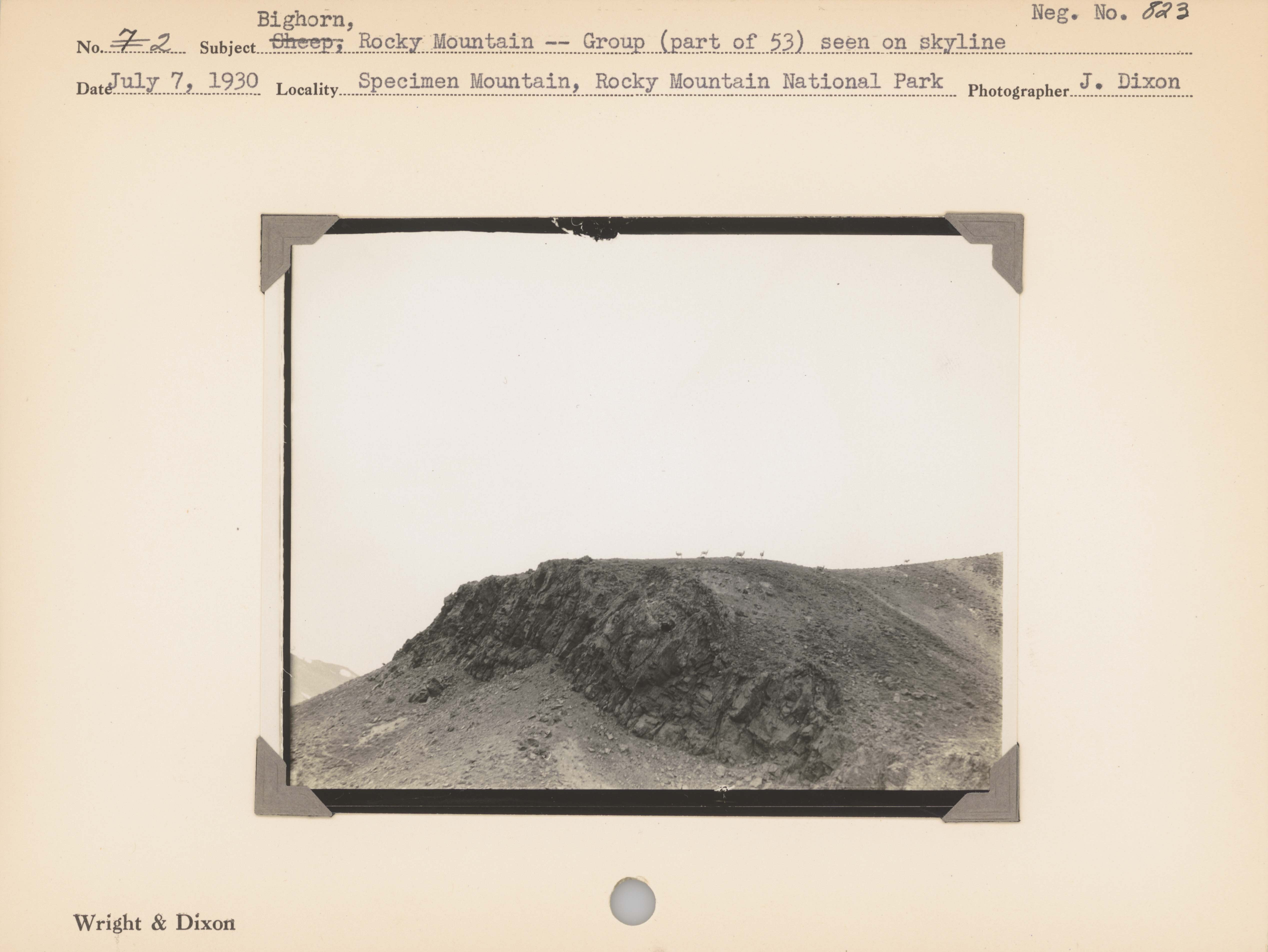 Bighorn, Rocky Mountain--Group (part of 53) seen in skyline. Locality: Specimen Mountain, Rocky Mountain National Park. Negative #: 823