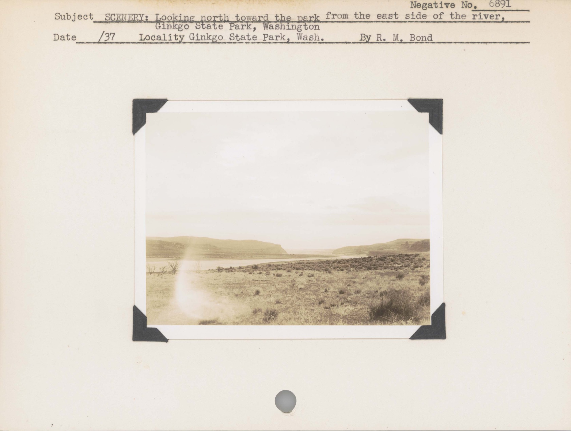 Scenery: Looking north toward the park from the east side of the river, Ginkgo State Park, Washington. Negative #: 6891. Location: Ginkgo State Park, Washington.