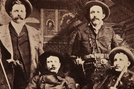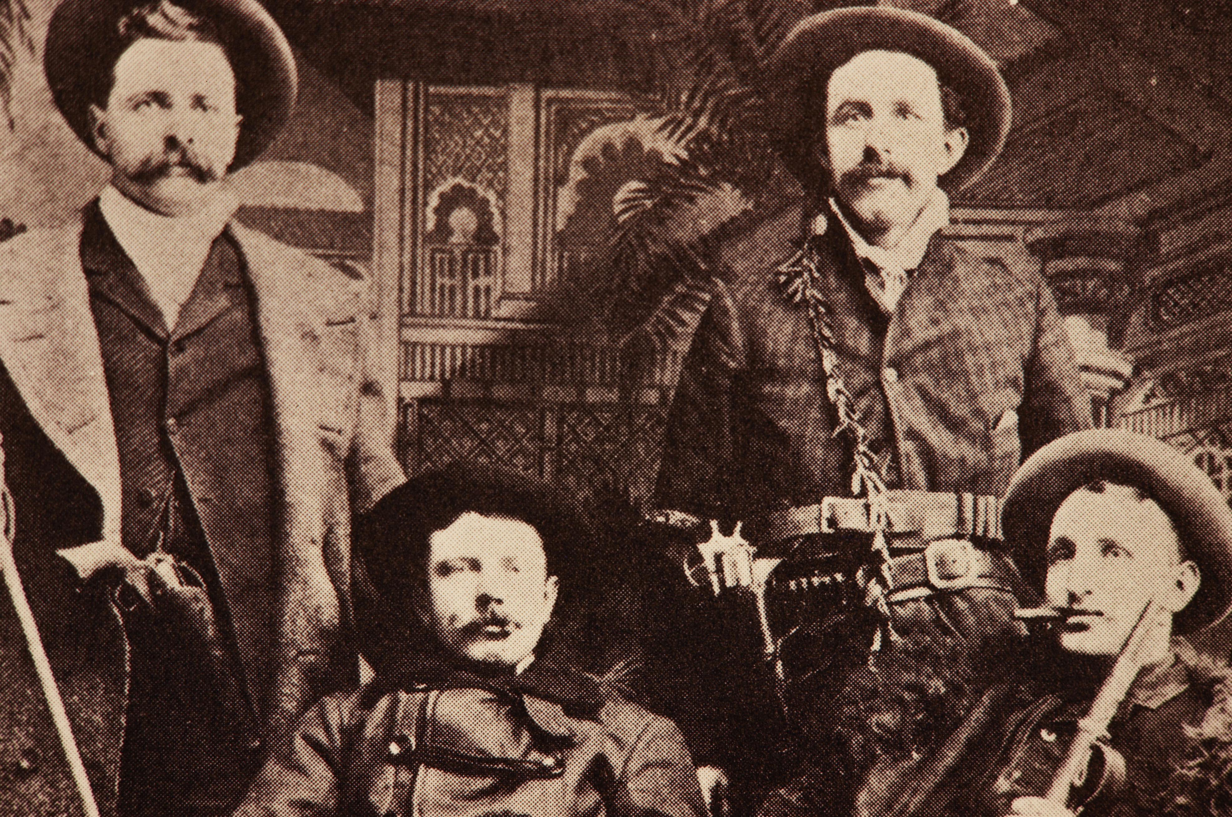 Historic image of four men with guns. Slide has HF 1059 on it.