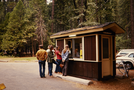 Fee Collection. Group of visitors at the entrance station for Yosemite National Park .