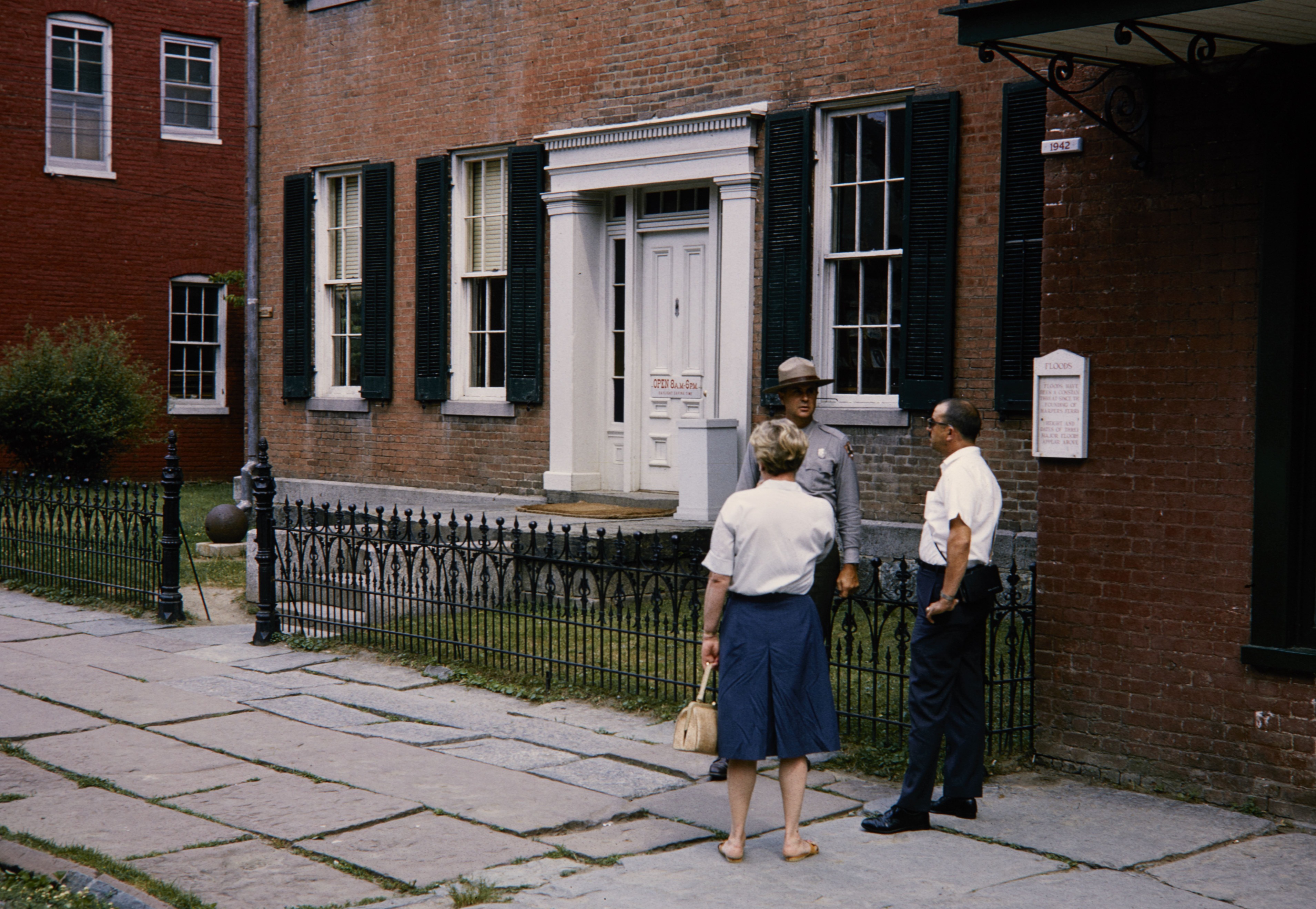 NPS employee talking to visitors in Harpers Ferry National Historical Park.
