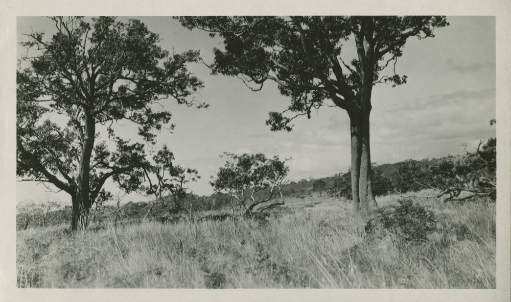 Mature koa trees in a lightly grazed section in Hawaii National Park. Dead canes seen in foreground are all that remains of a mass of koa suchers [?] which grew to a height of 4 feet between October 1940 and June 1942 while cattle were excluded from the park. Locality: Hawaii National Park. No negative on file