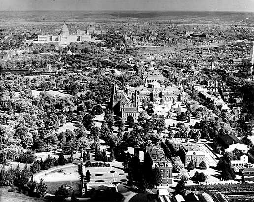 View of the National Mall looking east from the Washington Monument. Note the Baltimore and Potomac train shed on left of image near the Capitol. NPS National Capital Region.