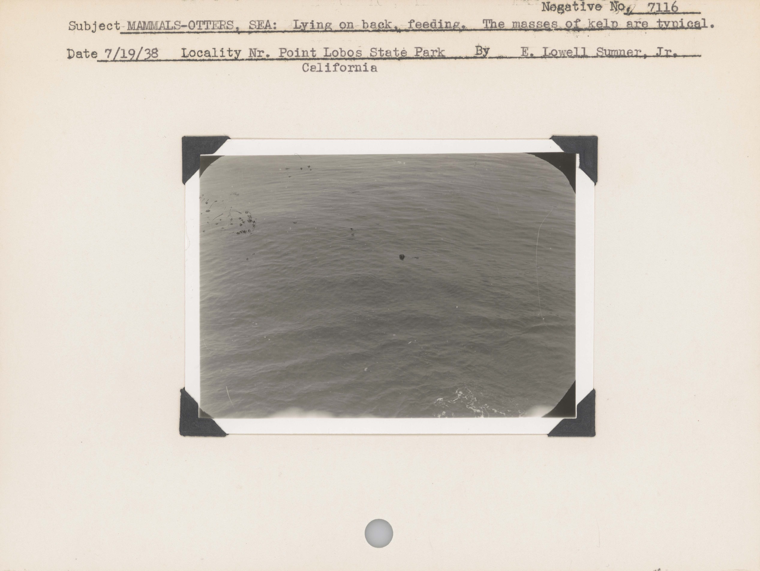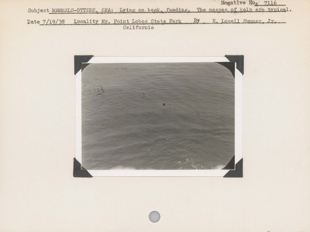Mammals--Otters, Sea: Lying on back, feeding. The masses of kelp are typical. Locality: Near Point Lobos State Park, California. Negative #: 7116