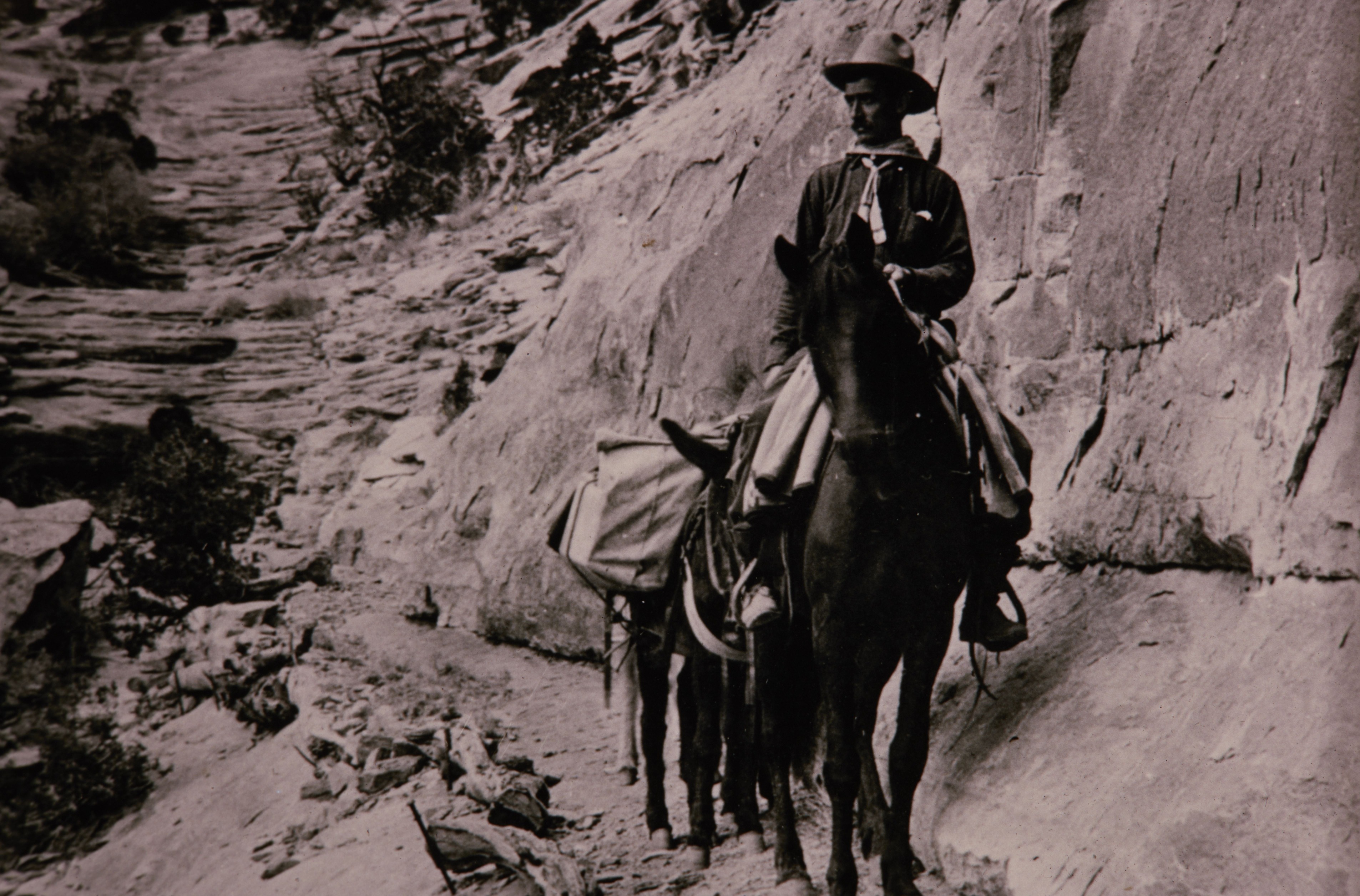 NPS employee John Otto riding horseback in Colorado National Monument.