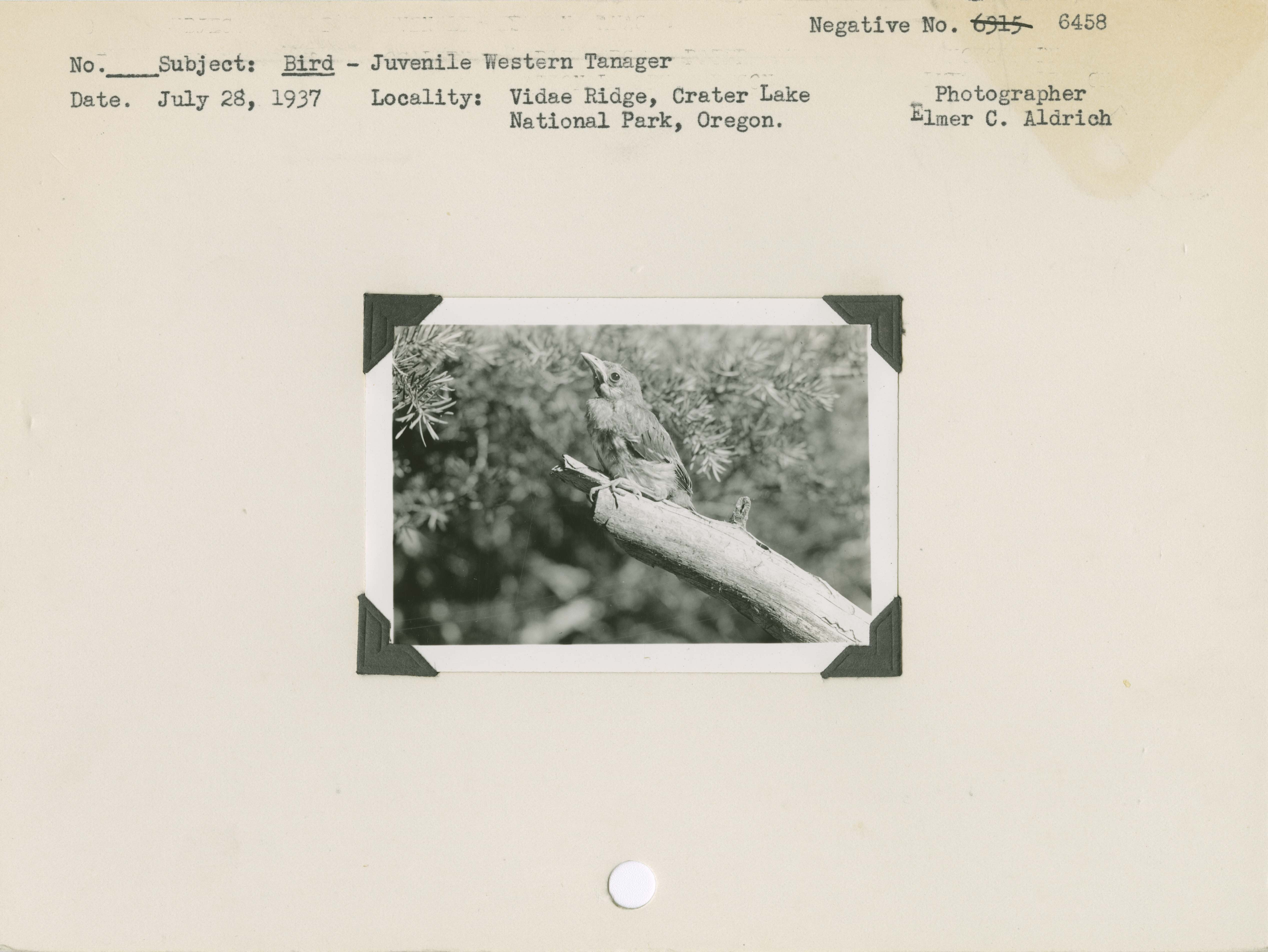 Bird - Juvenile Western Tanager. Locality: Vidae Ridge, Crater Lake National Park, Oregon. Negative #: 6458