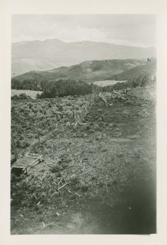 Game trials. Inside park along game fence. End of the range. The right side of the picture shows elk winter range within Yellowstone. The fence is the boundary. The left side of the picture shows rank growth of sagebrush just outside the park. Here we can compare the original and the present state of the range... Locality: Gardiner, Yellowstone National Park. Negative #: 2501