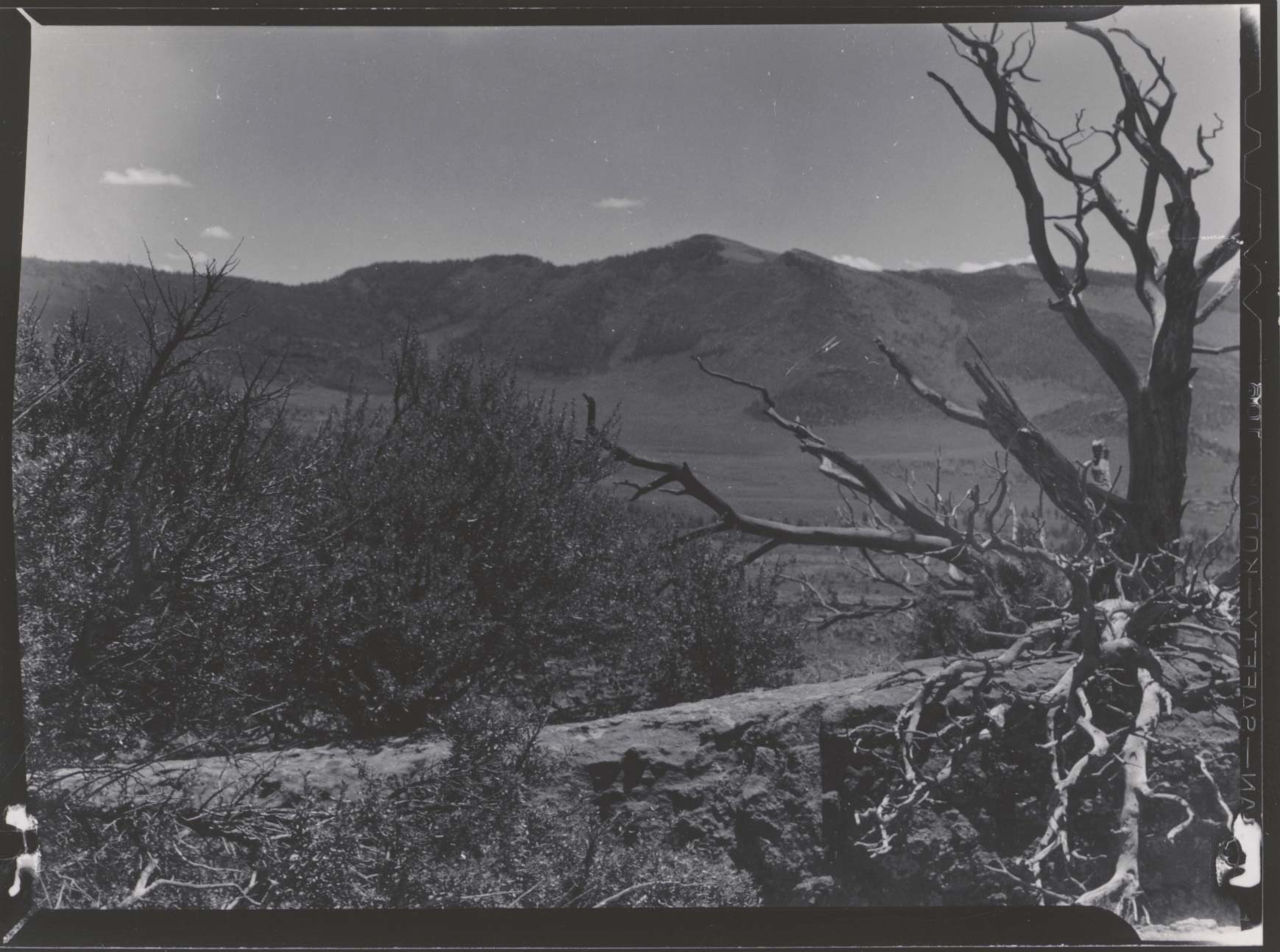 Zenobia Peak (center skyline) from cliff on east side of Green River above Lower Disasters. Negative #: 11089. Locality: Dinosaur National Monument. Location of Negative: Biologist’s Office, Director’s Office. [This information comes from the reverse of the envelope for this negative #].