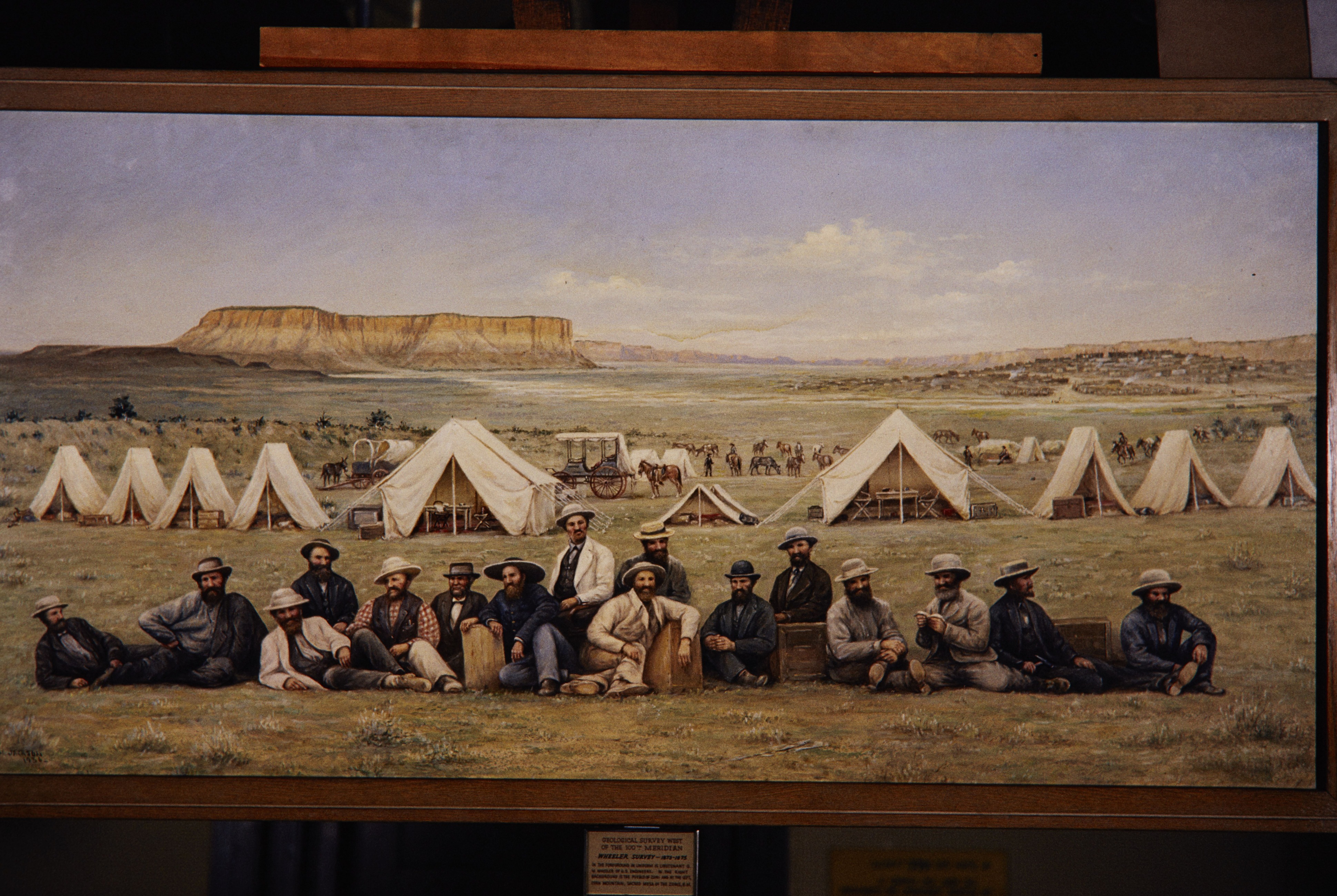Painting of "Geological survery west of the 100th meridian during Wheel Survey, 1873-1875" by William Henry Jackson.