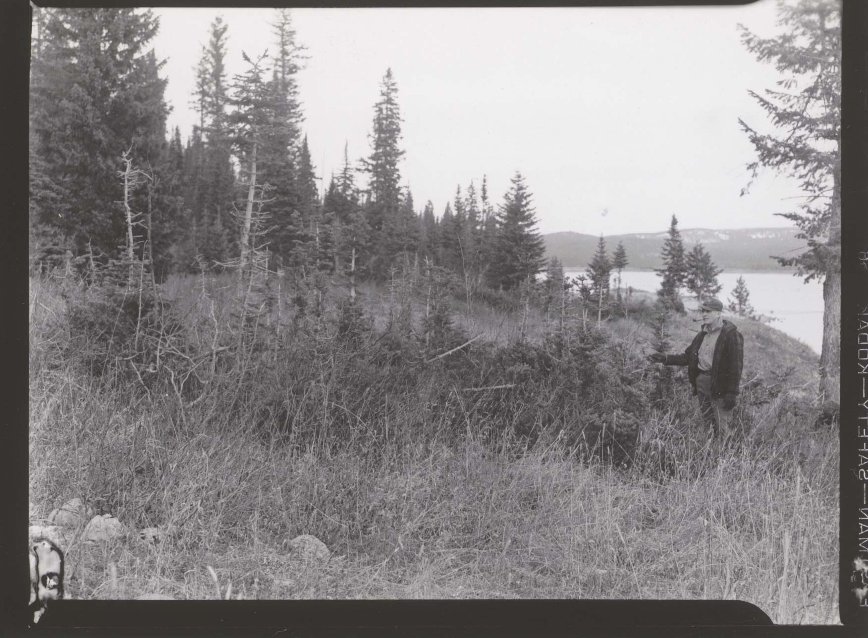 Browsing, chiefly by moose in winter, on fir. Hot springs Point, west shore of Jackson Lake. Negative #: 11170. Locality: Jackson Hole National Monument [Grand Teton National Park]. Location of Negative: Biologist’s Office, Director’s Office. [This information comes from the reverse of the envelope for this negative number.].