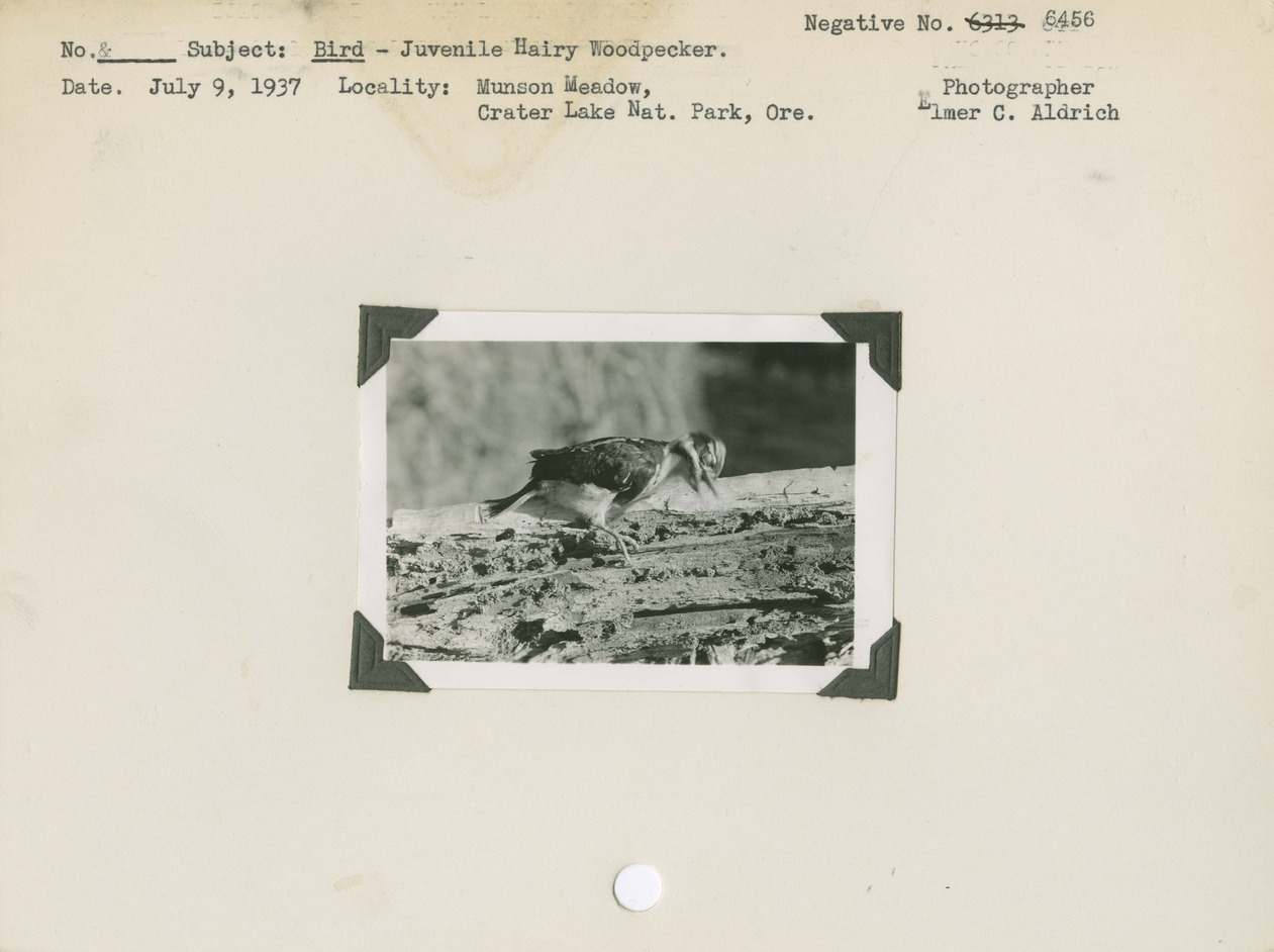 Bird- Juvenile Hairy Woodpecker. Locality: Munson Meadow, Crater Lake National Park, Oregon. Negative #: 6456