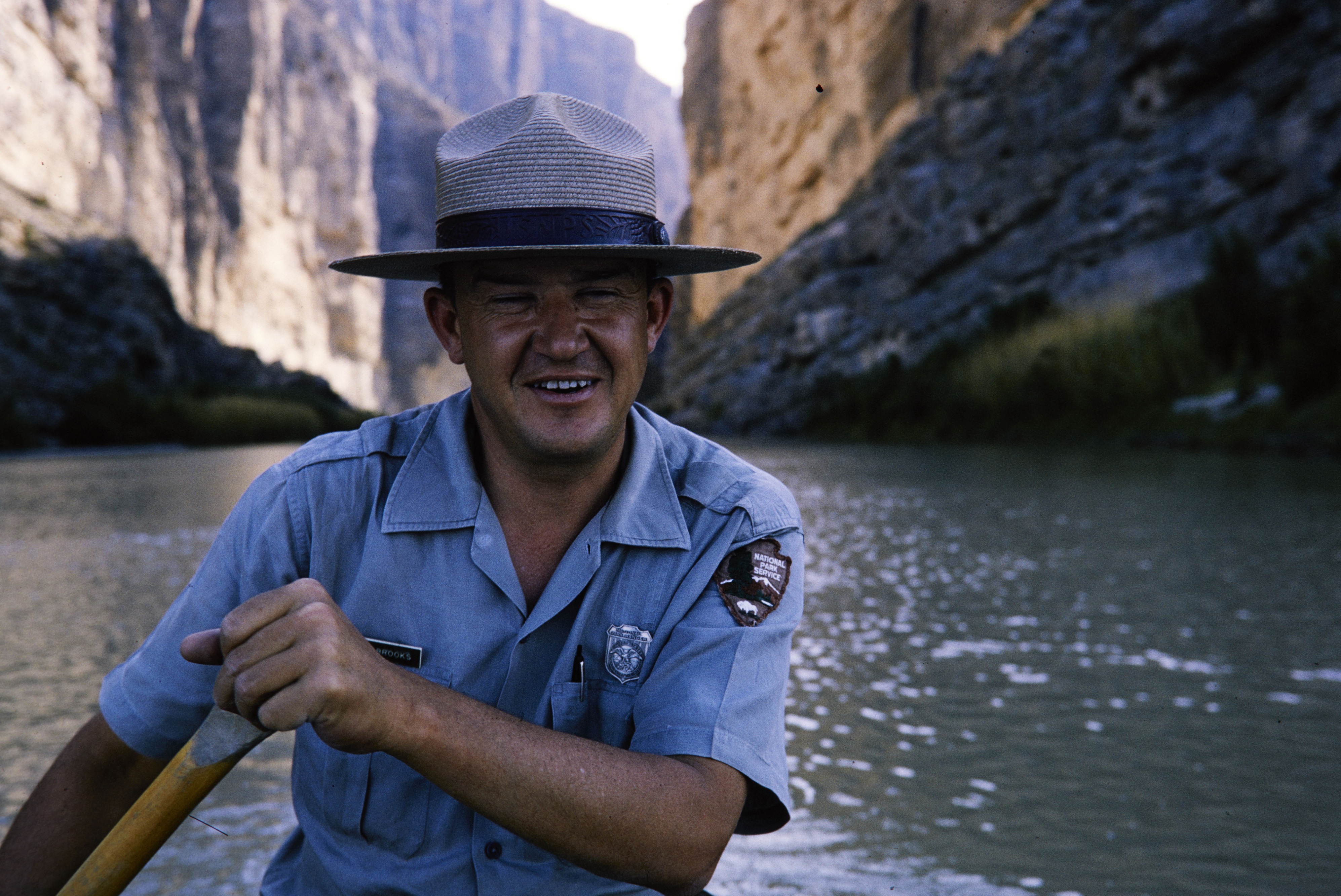 U.S. Park Police, Brooks paddling down a river in Big Bend National Park.