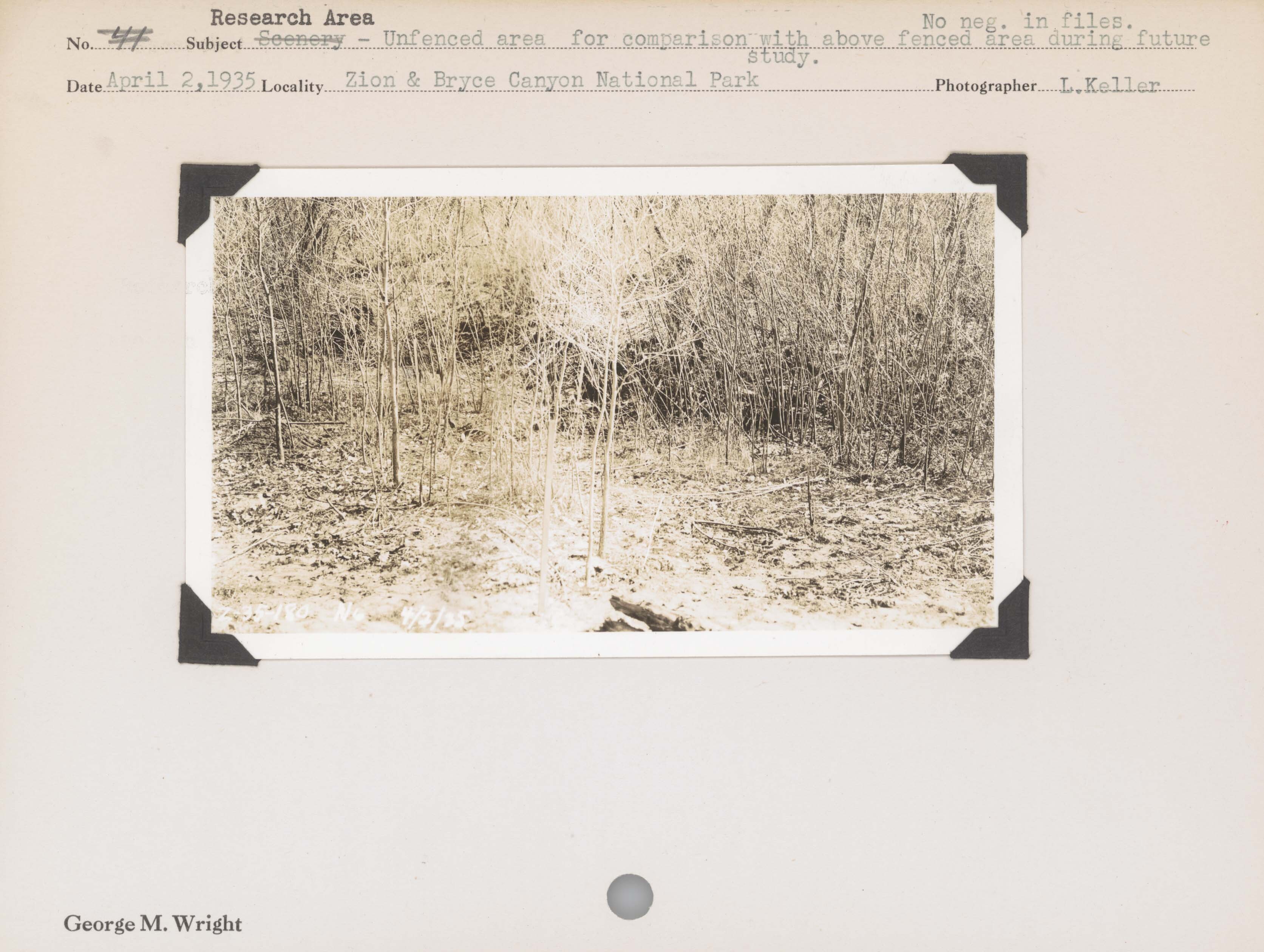 Research Area--Unfenced area for comparison with above fenced area during future study. Locality: Zion & Bryce Canyon National Park. No Negative on File