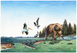 Species shown include Yellowstone Cutthroat trout, Redside shiner (fish), an American White pelican, Longnose sucker (fish), an Osprey carrying off a fish, a Great blue heron, and Grizzly bear fishing for trout