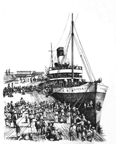 The "Liguria" arriving at the North East wharf in New Orleans, Louisiana.