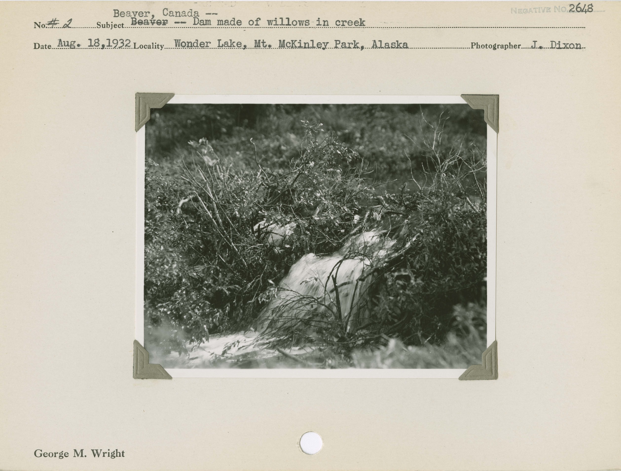 Beaver, Canada – Dam made of willows in creek. Locality: Wonder Lake, Mount McKinley [Denali] National Park, Alaska. Negative #: 2648