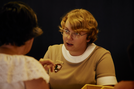 NPS employee, Rebecca Lyons, talking to a visitor in Gettysburg National Military Park.