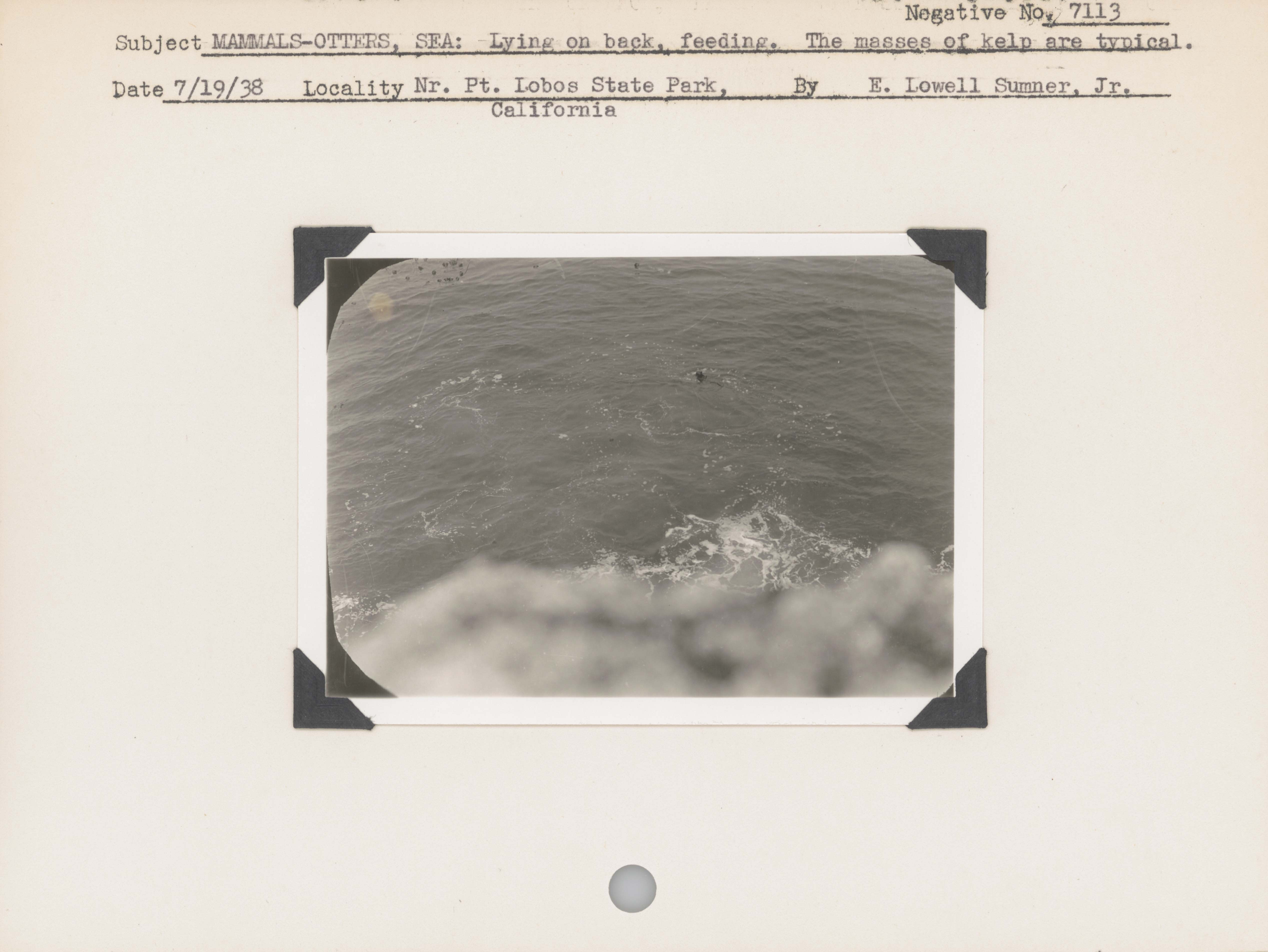 Mammals--Otters, Sea: Lying on back, feeding. The masses of kelp are typical. Locality: Near Point Lobos State Park, California. Negative #: 7113