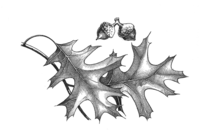 leaves and acorns of a Northern pin oak (Quercus ellipsoidalis)